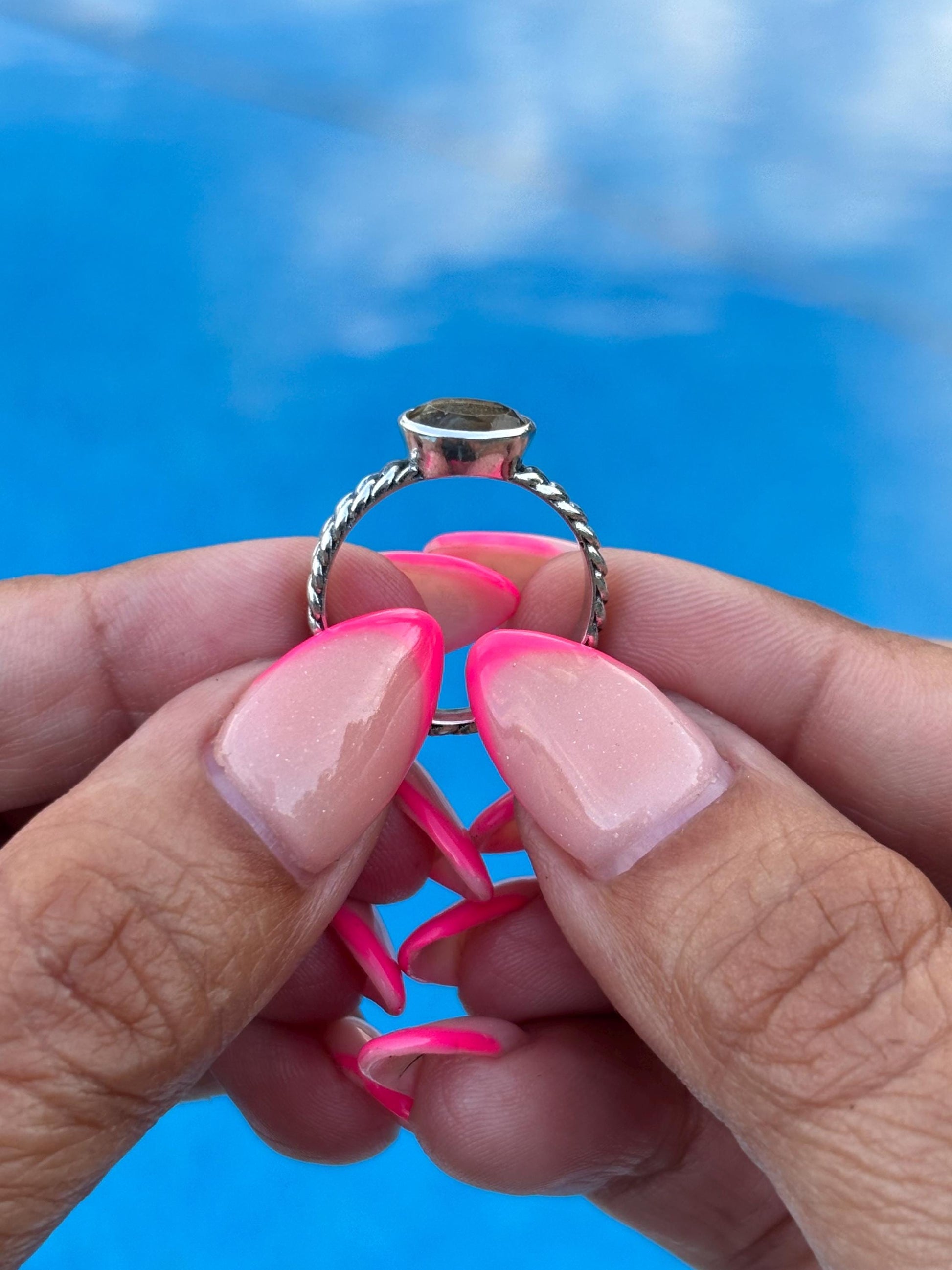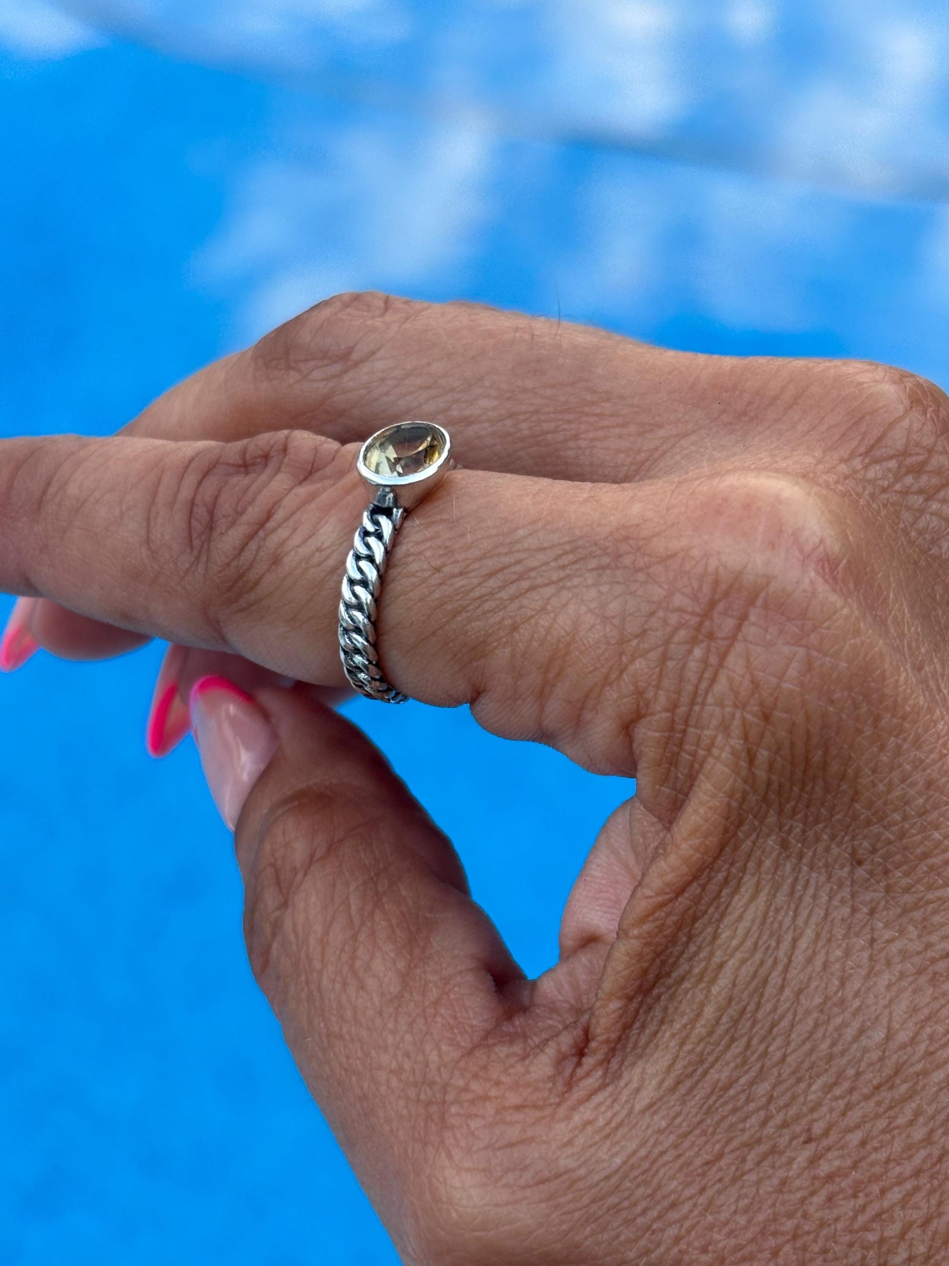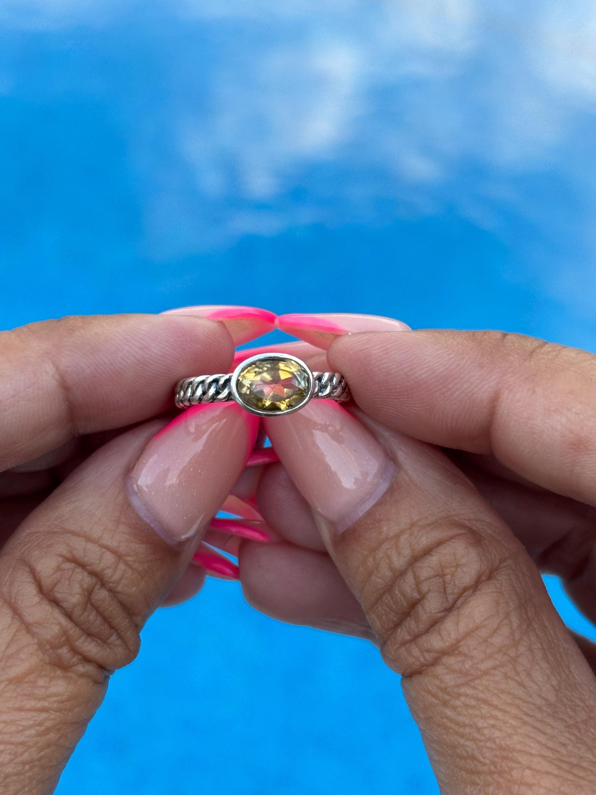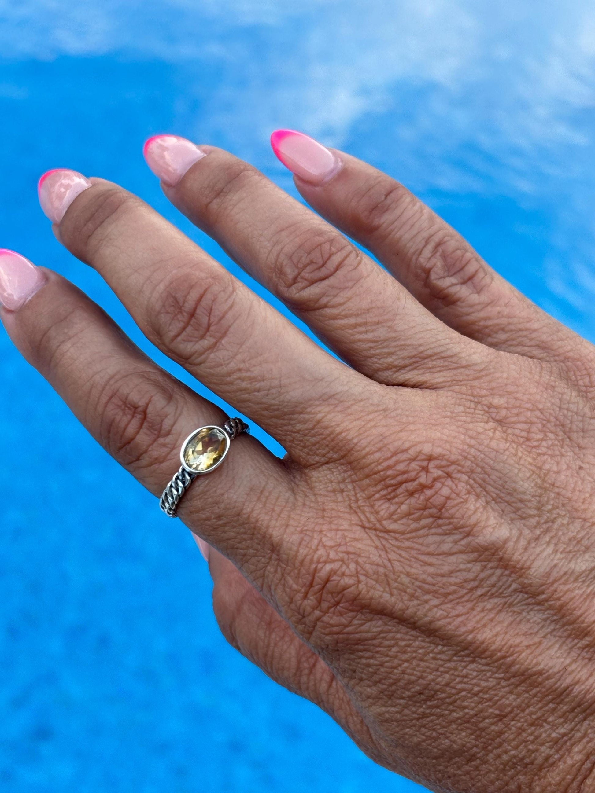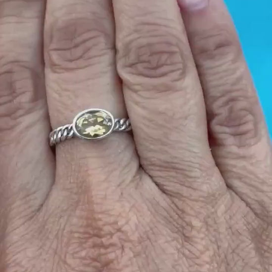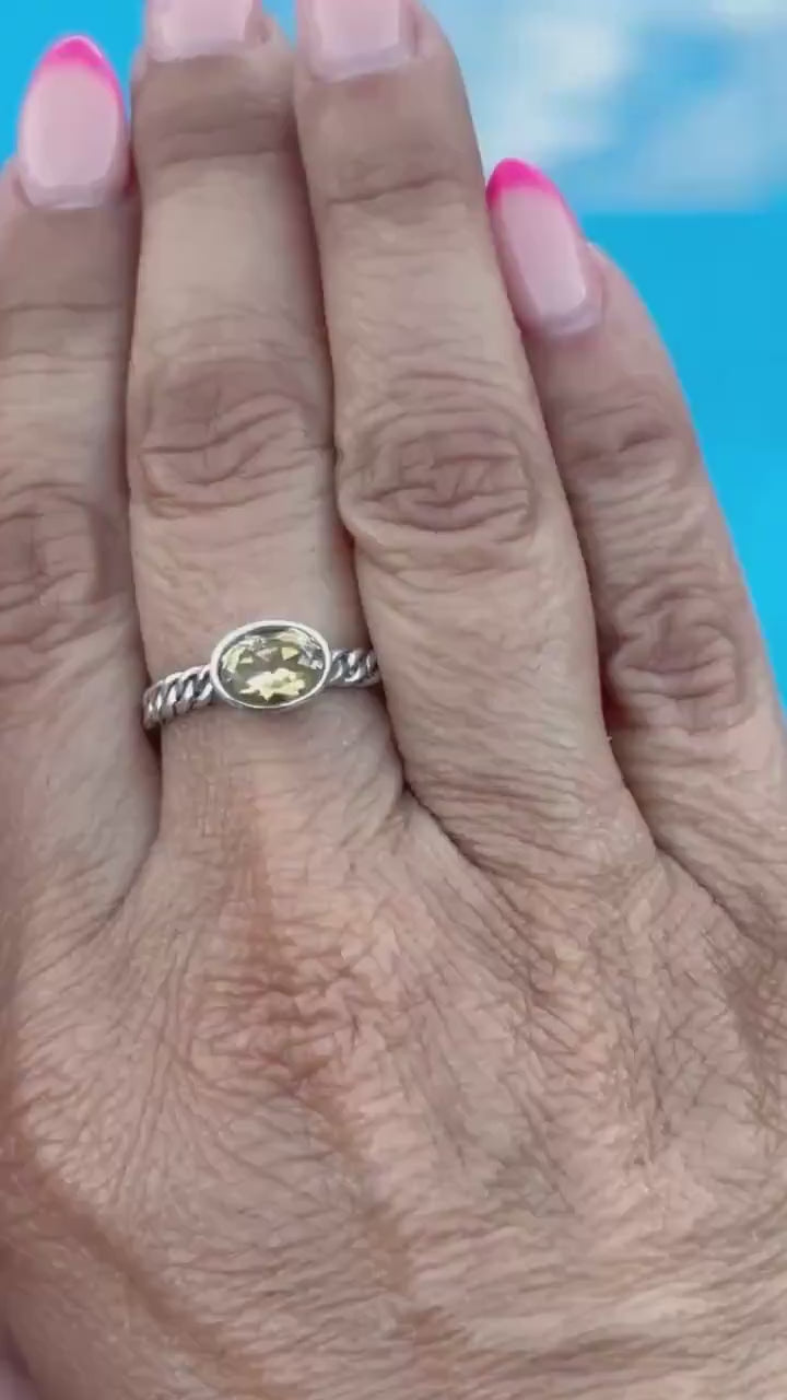 Sterling Silver Citrine Ring – Rope Band Design – November Birthstone Jewelry | Size 7 1/4