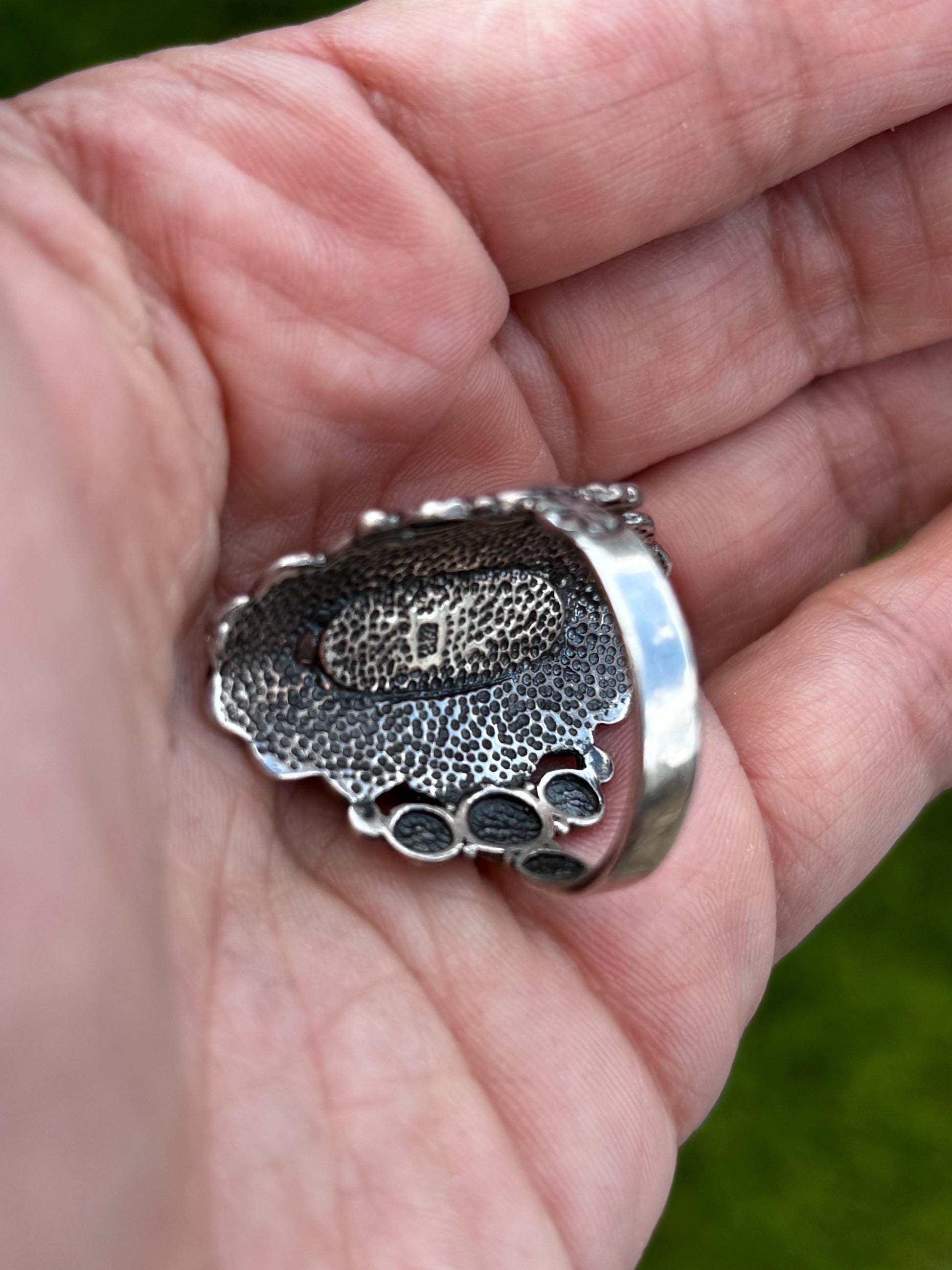 With its bright turquoise stone and eye-catching silverwork, this ring makes a perfect everyday statement piece for turquoise lovers, boho stylists, or anyone who wants a pop of artisan-inspired style.