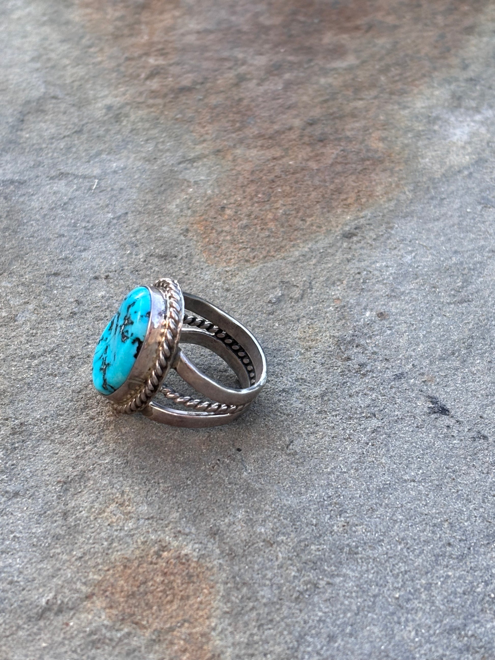 Vintage Navajo Sterling Silver Turquoise Ring. Size 10½
